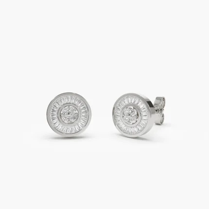 18k Solid Gold Baguette Moissanite Diamond Channel Setting Disc Moissanite Diamond Studs