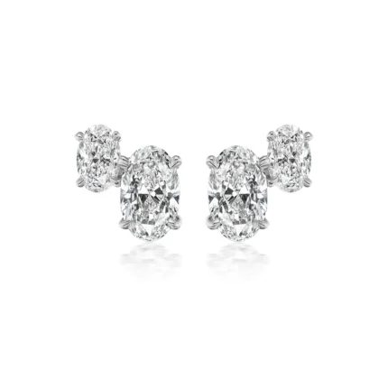 Duo Oval Moissanite Diamond Studs 18k solid gold