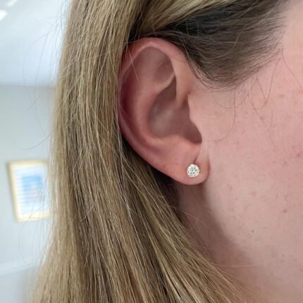 These 18k solid gold studs feature 1ct moissanite diamonds in a timeless setting—offering radiant brilliance and refined style for any look or occasion.