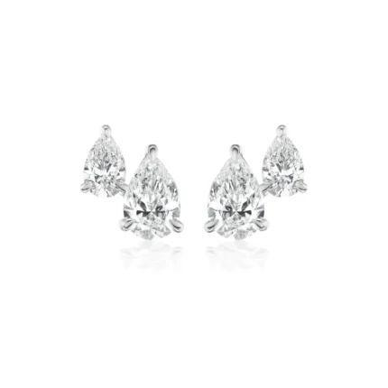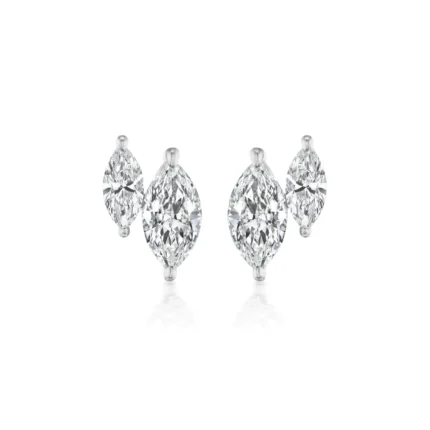 Elegant 18k Gold Duo Marquise Moissanite Diamond Studs, featuring 1.47 CT of brilliant Moissanite. Available in White, Rose & Yellow Gold, BIS & GRA certified.