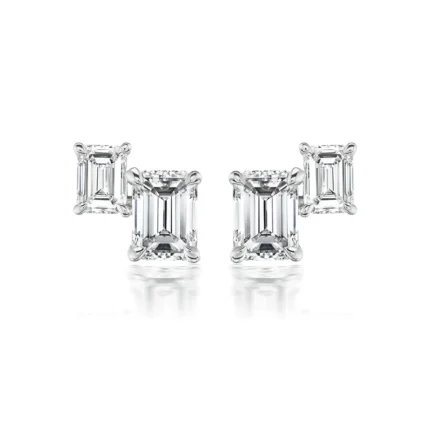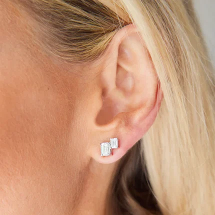 These 18k solid gold duo emerald moissanite studs offer striking sparkle and sleek style—perfect for adding a bold yet elegant touch to any outfit.