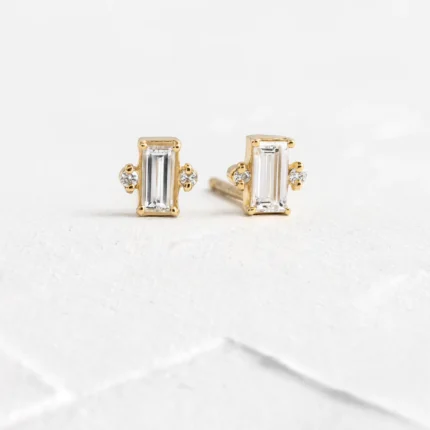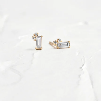 18k Gold Dainty Round Cut Moissanite Diamond Trio Stud Earring