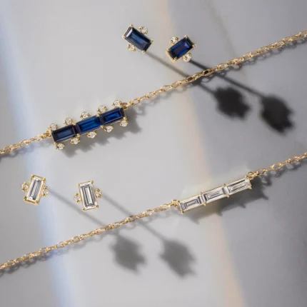 These blue enamel haggis shine with moissanite diamonds—blending bold color and delicate sparkle in a fun, stylish design perfect for daily wear.