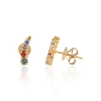 Whimsical and colorful, these 14K solid gold dainty climber studs feature a vibrant mix of gemstones—perfect for a playful yet elegant touch.