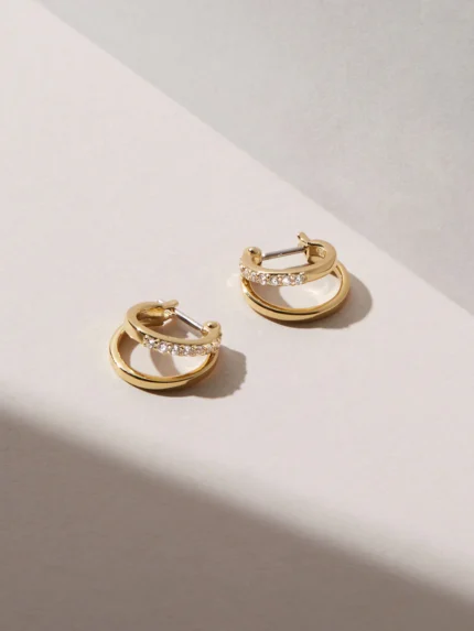 14K Solid Gold Natural Diamond Double Hoop Earrings