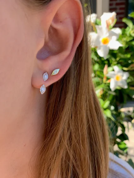 Add a touch of elegance to your look with the 14K Gold Mini Evil Eye Studs with Natural Diamonds. Crafted in 14K solid gold and available in white, rose, or yellow gold, these studs feature a unique mini evil eye design adorned with sparkling diamonds. BIS Hallmarked for authenticity.