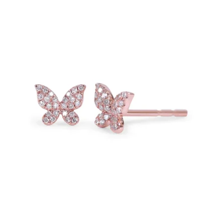 The Butterfly Natural Diamond Stud Earrings offer a delicate yet stunning design, crafted in 14K solid gold. Featuring 52 diamonds totaling 0.09 ct, these earrings beautifully showcase a small butterfly motif. Available in white, rose, or yellow gold.