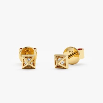 Elevate your style with our Natural Diamond Pyramid Studs. Crafted from 14k gold, these earrings feature a unique pyramid design adorned with sparkling diamonds for a modern and sophisticated look.