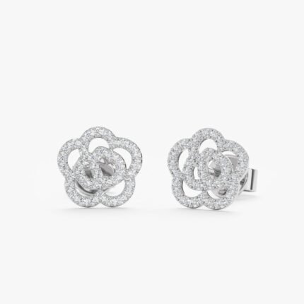 Add a touch of floral elegance with our Natural Diamond Rose Studs, featuring a delicate rose design crafted from solid 14k gold and adorned with shimmering natural diamonds.