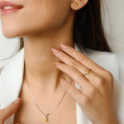Stunning 14K solid gold combo jewelry set with yellow sapphires, offering a bright, sophisticated design for a truly elegant look.