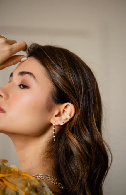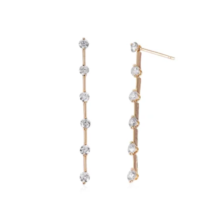 "Elegant 14K Gold Curve Moissanite Diamond Drop Earrings – a sophisticated design with Moissanite diamonds in a curved drop setting, perfect for a radiant, contemporary style."