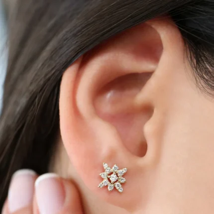 "Elegant 14K Gold Clover Moissanite Diamond Stud Earring – a beautiful clover-shaped design with Moissanite diamonds, perfect for adding a touch of sparkle and sophistication."
