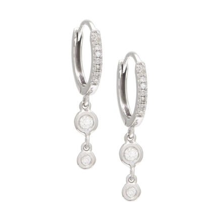 14K Gold Double Drop Bezel Moissanite Diamond Hoop Earring