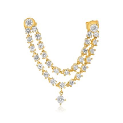 "Elegant 14K Gold Double Moissanite Diamond Connecting Earring with Moissanite Diamond Drop – a stunning design with two Moissanite diamonds and a diamond drop, perfect for a sophisticated, radiant style."