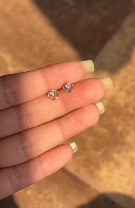 "Elegant 14K Gold Dainty Round Cut Moissanite Diamond Trio Stud Earring – a refined design with three round-cut Moissanite diamonds, perfect for a timeless, sparkling style."