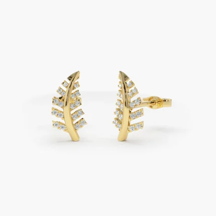 14K Gold Diamond Leaf Earrings