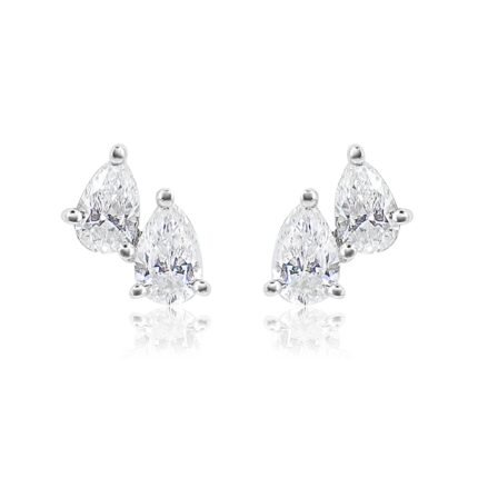 14K Gold Double Moissanite Diamond Pear Shaped Stud Earring