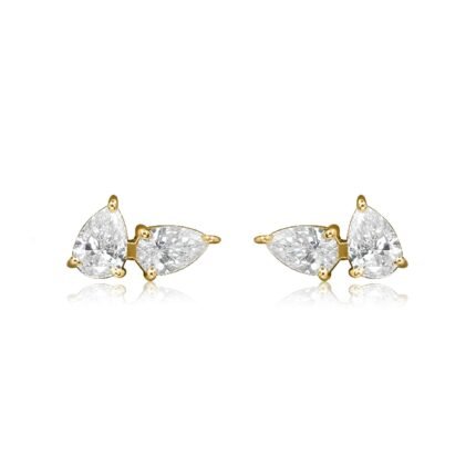 "Elegant 14K Gold Double Moissanite Diamond Pear Shaped Stud Earring – a beautiful design with two pear-shaped Moissanite diamonds, perfect for a refined, radiant style."