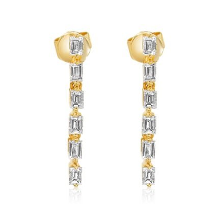 "Elegant 14K Gold Emerald Cut Moissanite Diamond Drop Earring – a beautiful design with emerald-cut Moissanite diamonds in a drop setting, perfect for adding sophistication and sparkle."