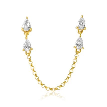 14K Gold Double Pear Moissanite Diamond Chain Connecting Earring