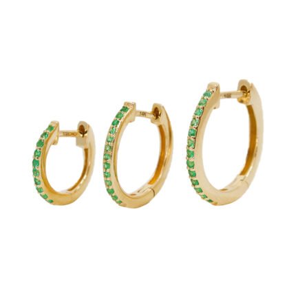 "Elegant 14K Gold Fine Line Emerald Hoop Earring – a minimalist design with emerald stones set in a fine line hoop, perfect for adding a touch of color and sophistication."