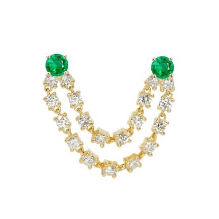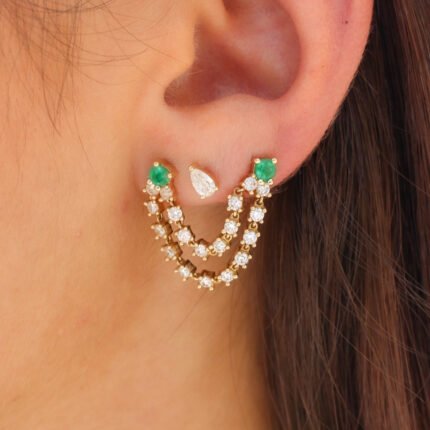 "Elegant 14K Gold Double Moissanite Diamond Emerald Connecting Earring – a stunning design with Moissanite diamonds and emeralds, perfect for a sophisticated, radiant style."