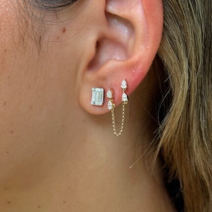 "Elegant 14K Gold Double Moissanite Diamond Pear Connecting Earring – a beautiful design with Moissanite diamonds and pear-shaped accents, perfect for a sophisticated, radiant style."