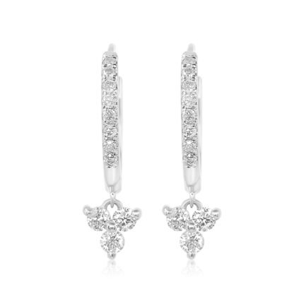 14K Gold Drop Trio Moissanite Diamond Hoop Earring