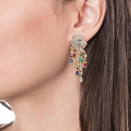 Fierce and luxurious, this 18k solid gold panther earring features vibrant multi gemstones—boldly crafted for standout, statement style.
