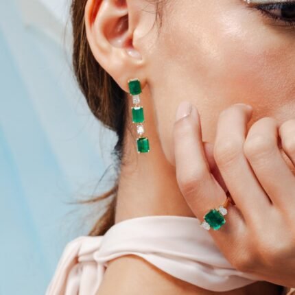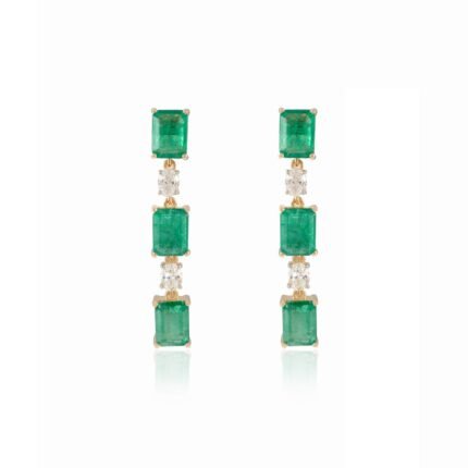 Bold and elegant, these 18k solid gold drop earrings feature octagon-cut emeralds accented by sparkling diamonds—perfect for a refined statement.