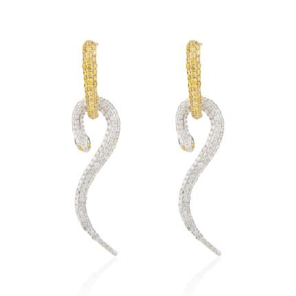 Elegant 18k solid gold serpentine earrings adorned with shimmering diamonds—sophisticated curves meet timeless sparkle for a bold, graceful look.
