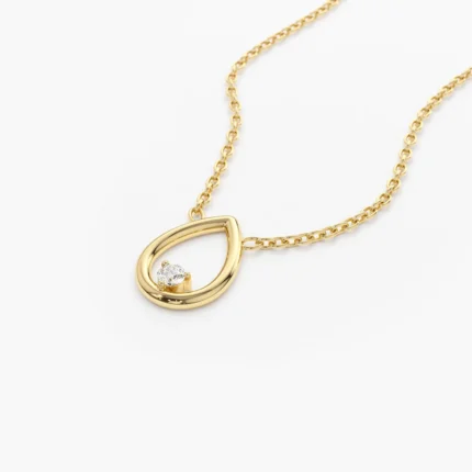 14K Solid Gold Floating Teardrop Diamond Necklace