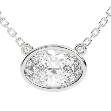 Get this Product in 14K GoldA refined 18K solid gold oval bezel pendant set with a brilliant 1.11 CTW Premium Moissanite—made for effortless everyday elegance.