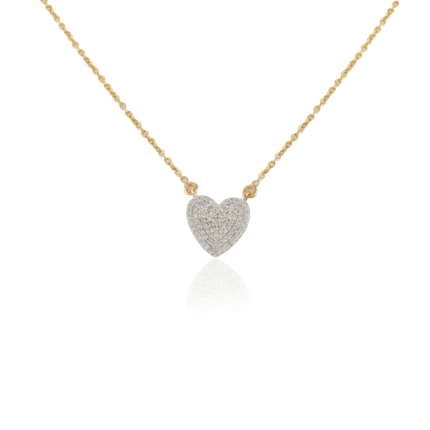 Get this Product in 18K GoldThe 14K Gold Natural Diamond Heart Necklace features 0.15 carats of diamonds set in 14K solid yellow gold. With 82 meticulously set diamonds and a total weight of 2.932 grams, this elegant necklace measures 18 inches in length and features a secure lobster lock.
