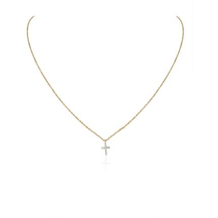 Get this Product in 14K GoldA delicate 18k solid gold necklace featuring a tiny cross design, studded with sparkling diamonds, offering a timeless and elegant look.