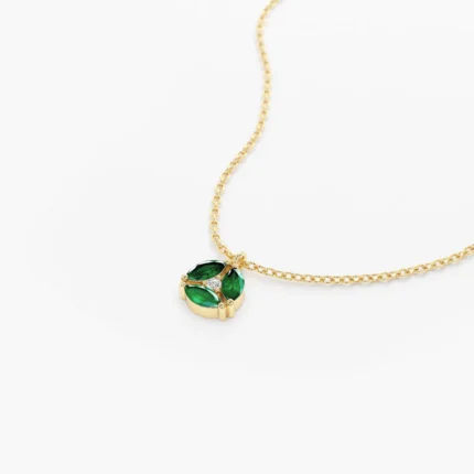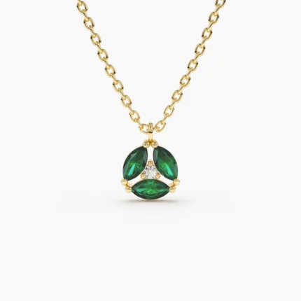 Get this Product in 18K GoldElegant 14K solid gold necklace featuring a cluster of marquise-cut emeralds—crafted for natural charm, rich color, and timeless sophistication.