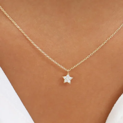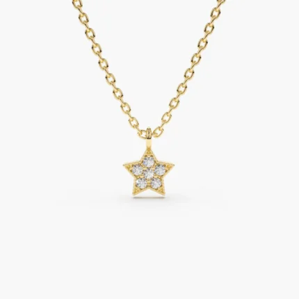 14K Solid Gold Diamond Star Charm Necklace