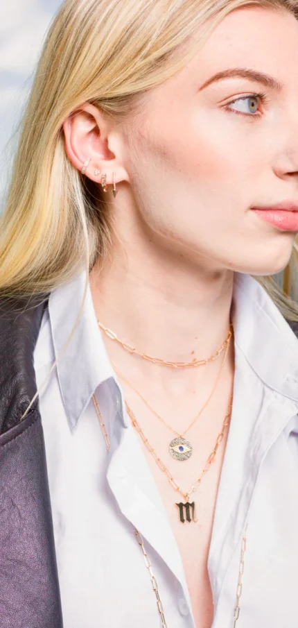 14K Solid Gold Double Horn Diamond Necklace for Women