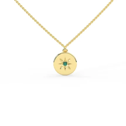 A stunning 18k solid gold necklace featuring a natural emerald set in a North Star design, offering a meaningful and radiant addition to any collection.