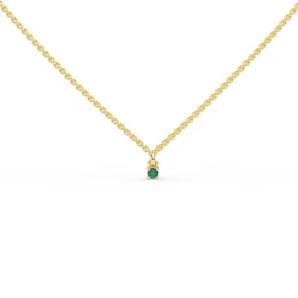 A sophisticated 18k solid gold necklace featuring a natural emerald in a prong setting, offering a classic and elegant touch to any jewelry collection.