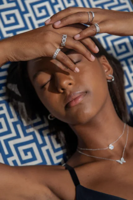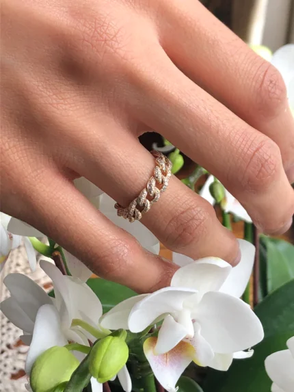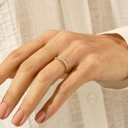 14k Gold Natural Diamond Curve Ring | Curved Wedding Ring with Tiny Natural Diamond For Women