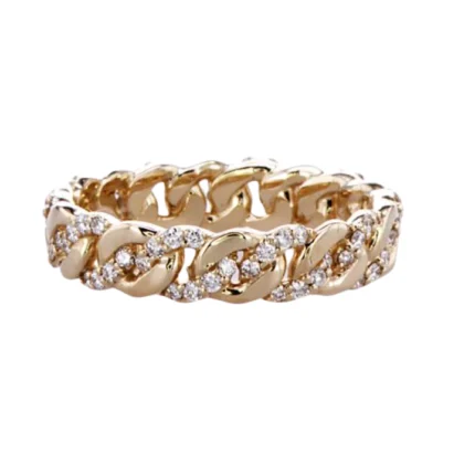 14k solid gold eternity band with 0.44 ctw GH color, VS-SI clarity diamonds and a unique triangle pattern. BIS Hallmarked & GIA certified.