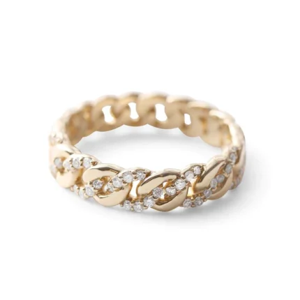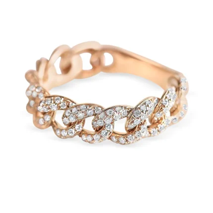 14K Gold Natural Diamond Chevron Wedding Ring Halfway Layering Band for Women