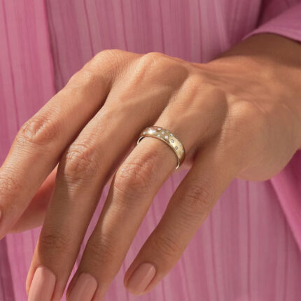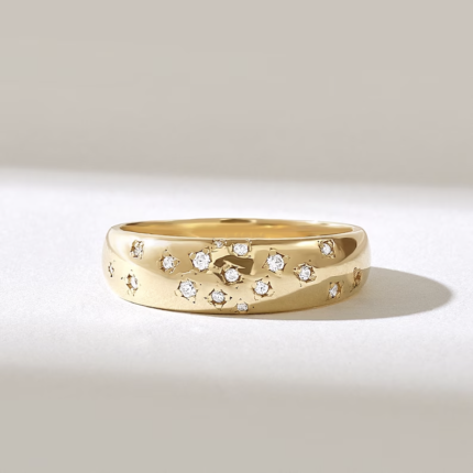 14k Gold Natural Diamond Constellation Ring, Minimalist Dome Celestial Design
