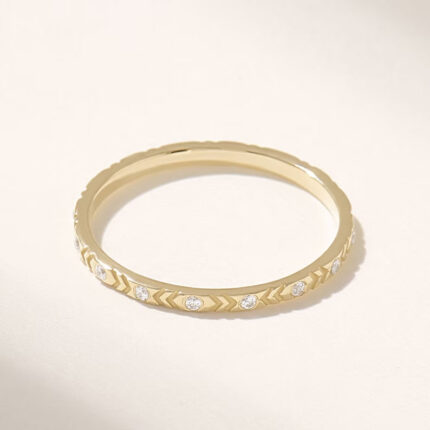 14k Gold Natural Diamond Arrow Wedding Ring Slim Band, Minimalist Stackable Design
