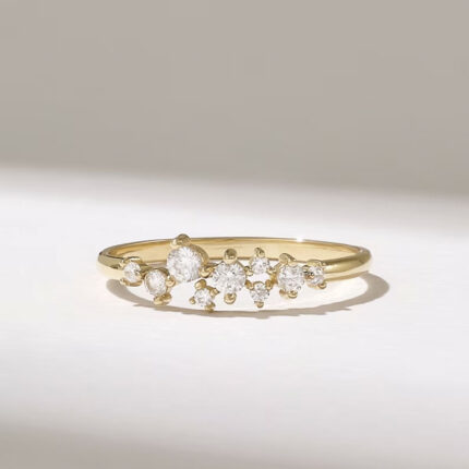 14k Gold Natural Diamond Cluster Wedding Ring: Minimalist Stacking Band for Her