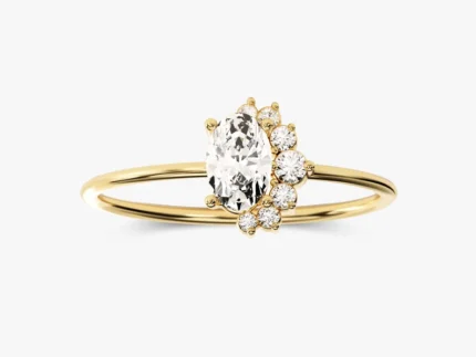 14K Gold Floating Bezel Marquise Five-Stone Bridal Ring for Women