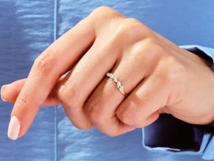 14K gold stackable wedding ring with 0.32 ctw marquise-cut natural diamonds, GH COLOR, VS-SI Clarity. BIS Hallmarked & GIA Certified.