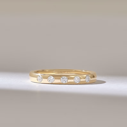 Minimalist flush set wedding band in 14k gold with 0.18ctw round natural diamonds (GH color, VS-SI clarity). BIS Hallmarked & GIA certified.