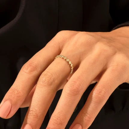 A timeless 14K solid gold half-eternity ring with VS-SI clarity, IJ color diamonds, available in White, Rose, and Yellow Gold. Elegant and versatile.